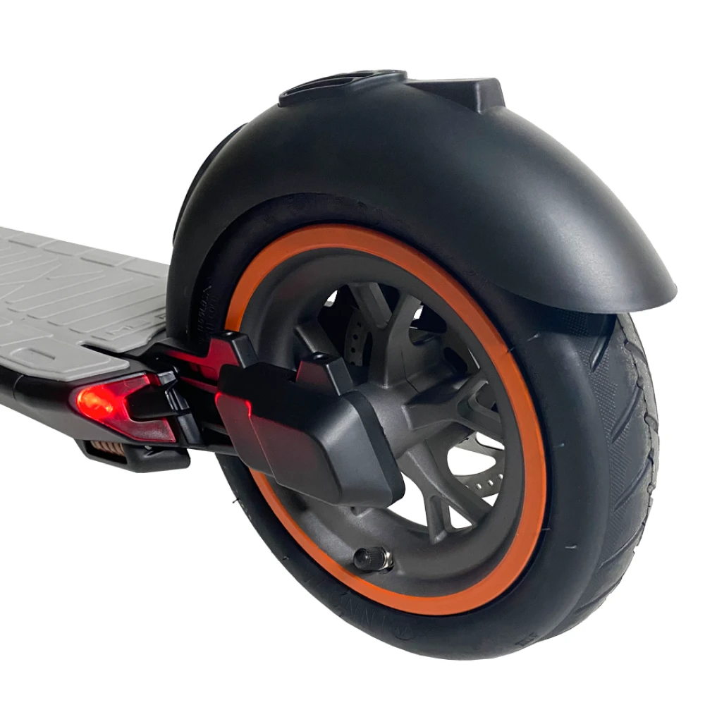 IP54 влагозащита позволяет кататься даже в дождь, а яркая LED‑фара и стоп‑сигнал обеспечивают безопасность в тёмное время суток.