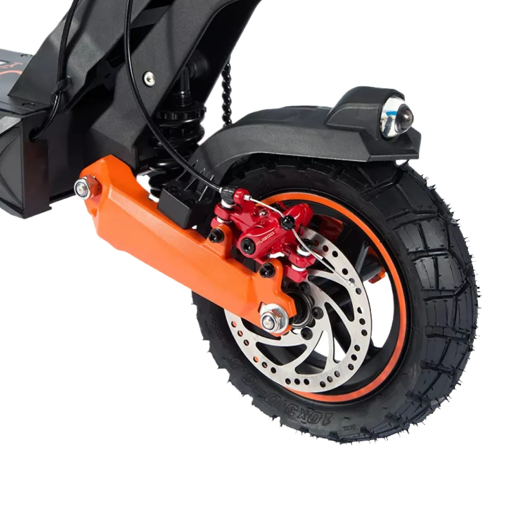 Надёжная тормозная система (дисковые механические) и передние/задние пружинные амортизаторы обеспечивают полный контроль даже на высоких скоростях. Колёса 10 дюймов дарят отличное сцепление, а клиренс 18 см позволяет легко справляться с неровностями.