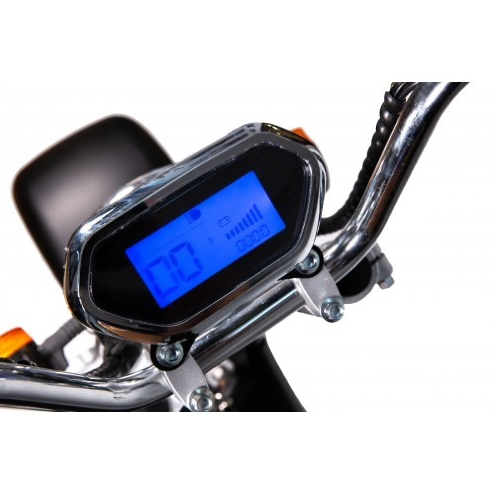 Скутер Citycoco X11 Pro Max оснащен информационным дисплеем, благодаря ему вы будите получать всю информацию об основных показателях транспортного средства. На руле установлены зеркала заднего вида. Агрегат имеет внешнее освещение, которое позволяет передвигаться в темное время.