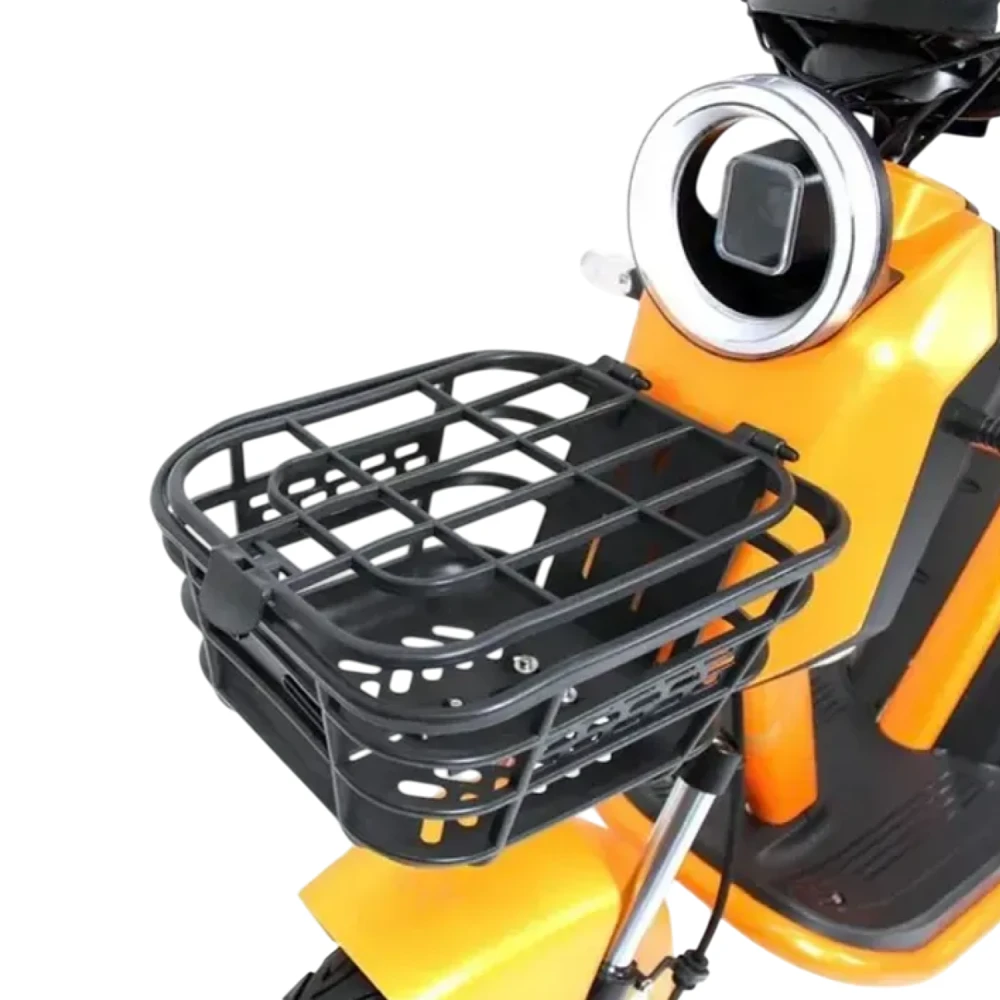 Интеллектуальное оснащение: Цветной LCD-дисплей (скорость, пробег, заряд), Bluetooth-аудиосистема, USB для телефона, LED-фара 20Вт, поворотники, стоп-сигнал, задний ход, сигнализация. Складная стальная рама, багажник, корзина, подножка — всё в комплекте.