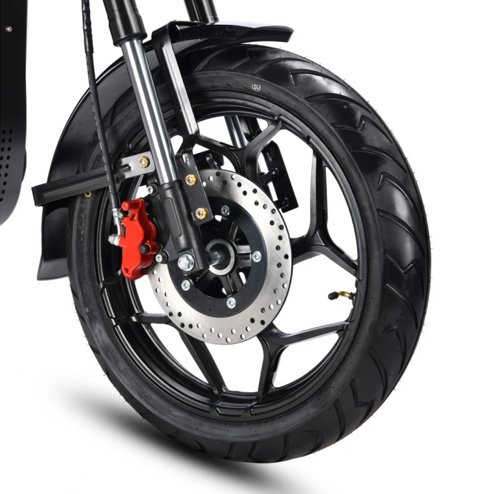 Рама выполнена из стали, что гарантирует прочность и долговечность конструкции, а вес устройства составляет около 100 кг. Для комфортной езды предусмотрена двухподвесная пружинная подвеска мотоциклетного типа, которая эффективно сглаживает неровности дороги. Тормозная система — дисковая гидравлическая, обеспечивающая надёжное и безопасное торможение в любых условиях.