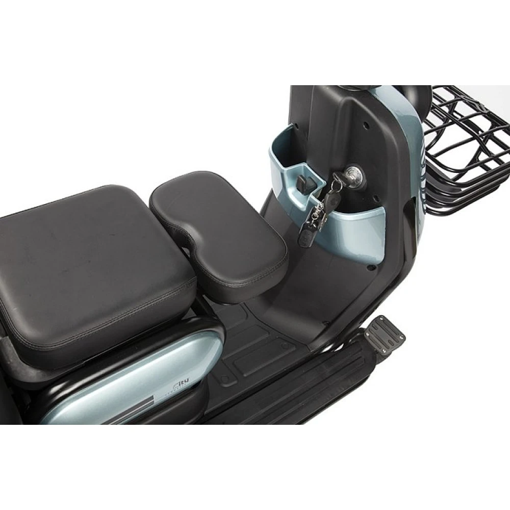 Модель с мощностью 500 Вт без труда развивает скорость до 25 км/час и преодолевает 30 км пути. Мягкое объемное сиденье повторяет анатомические части тела, не вызывает усталости, снижает нагрузку с позвоночника. Имеется дополнительное сиденье, которое чаще используется для катания детей.