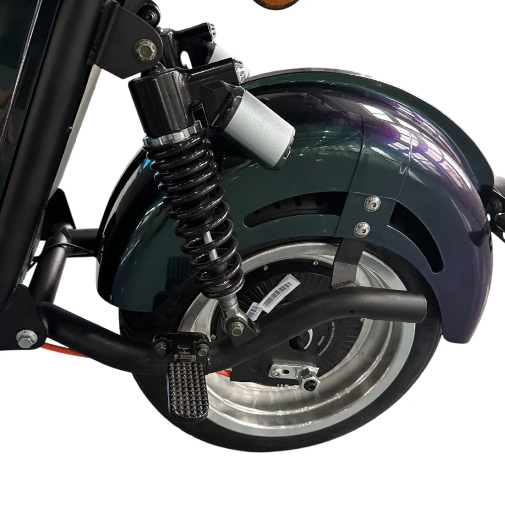 Скутер оборудован двумя независимыми электродвигателями по 1950 Вт каждый, что в совокупности даёт 3900 Вт тяги. Это обеспечивает уверенное движение, разгон до 60 км/ч, отличную устойчивость и возможность преодолевать подъёмы до 35°.
