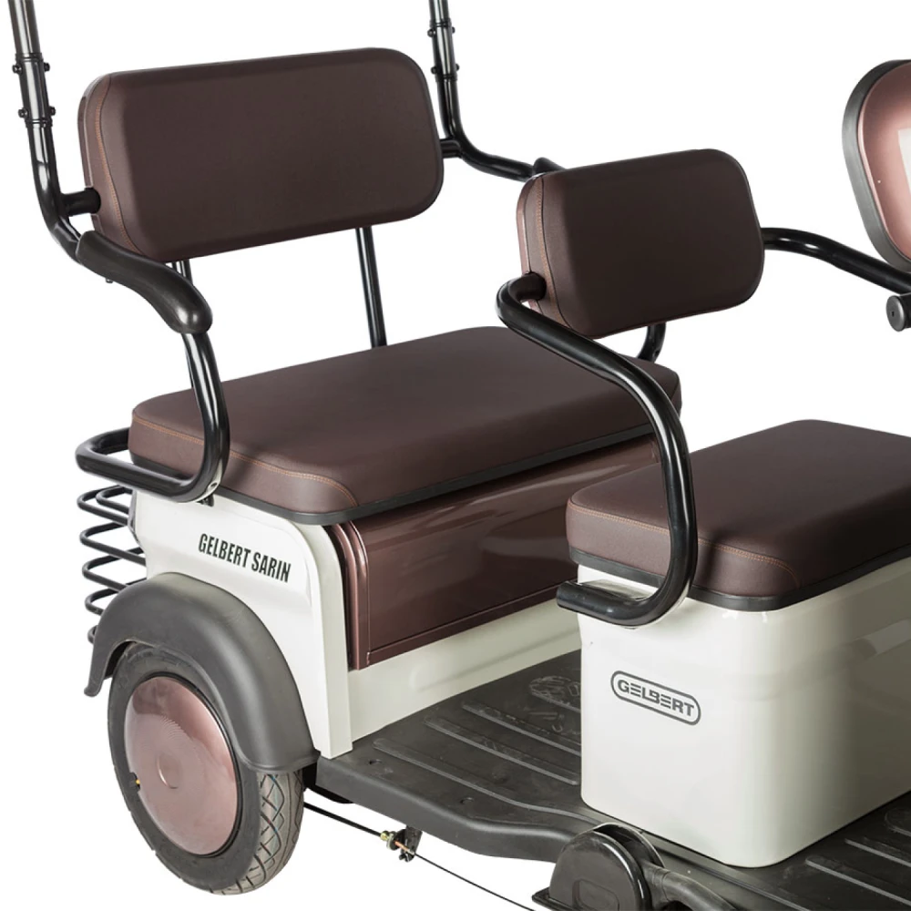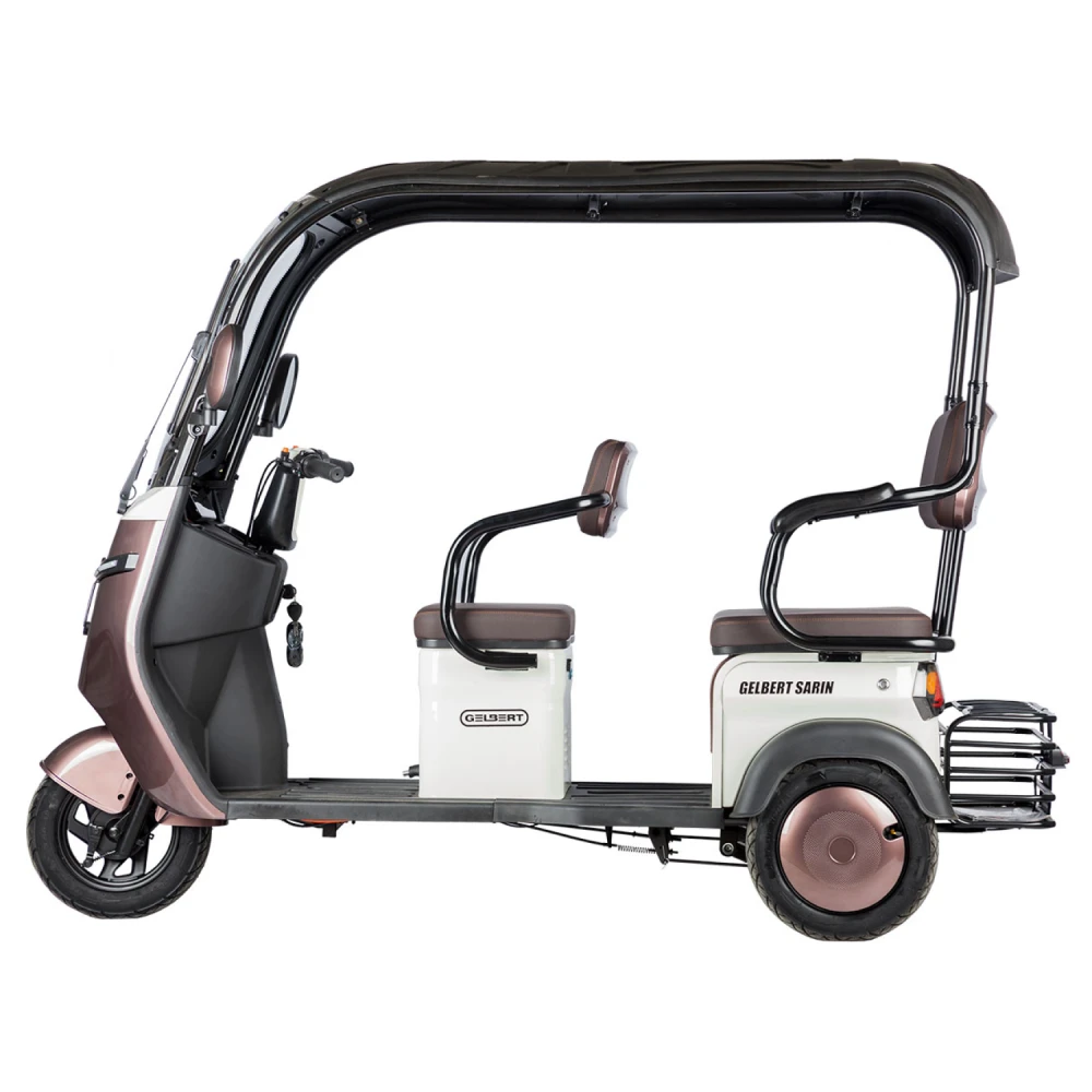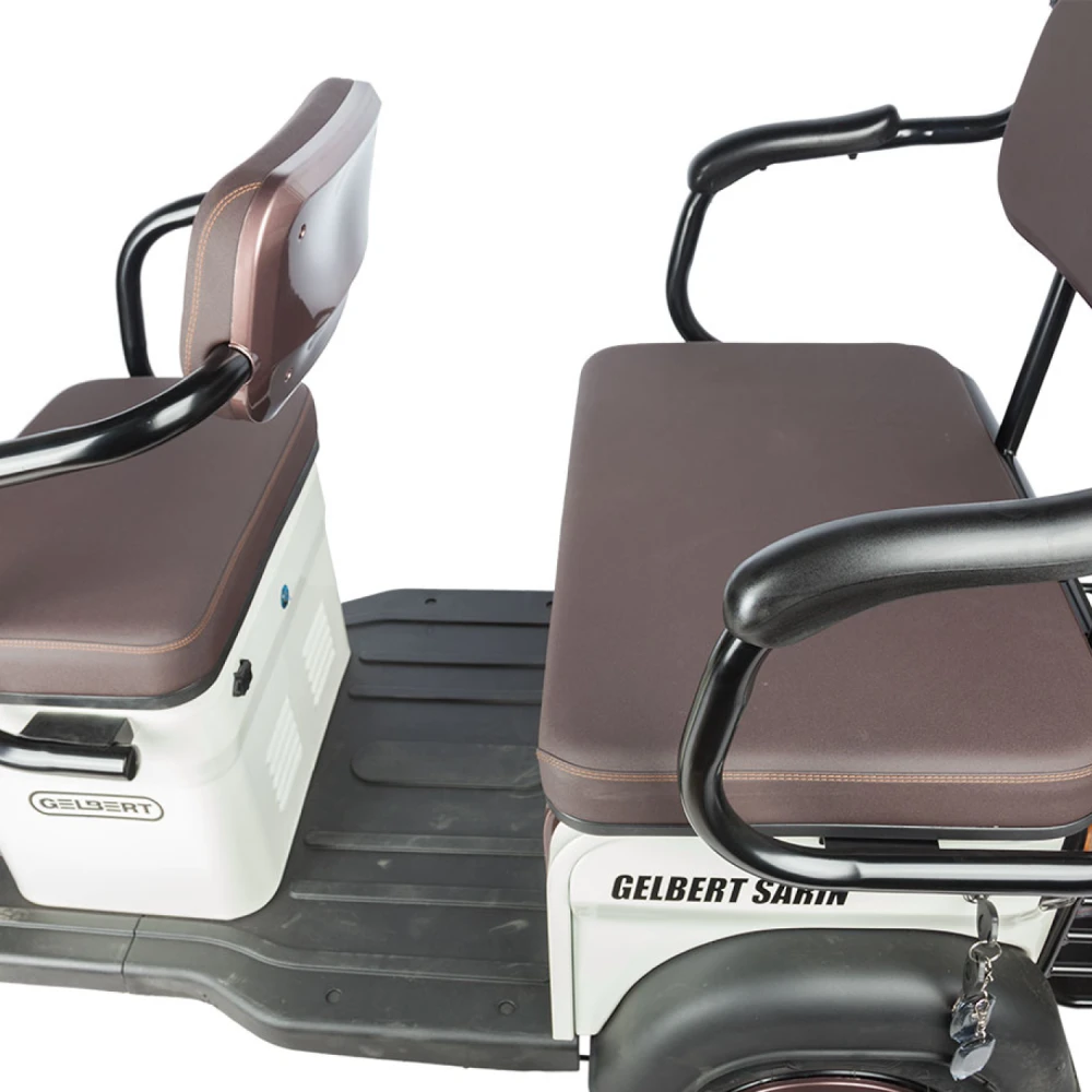 Rutrike Gelbert Sarin — надежный и практичный электротрицикл с мощным двигателем и удобной конструкцией. Он отлично подойдет тем, кто ценит комфорт, безопасность и экологичность при ежедневных поездках по городу и пригородам.