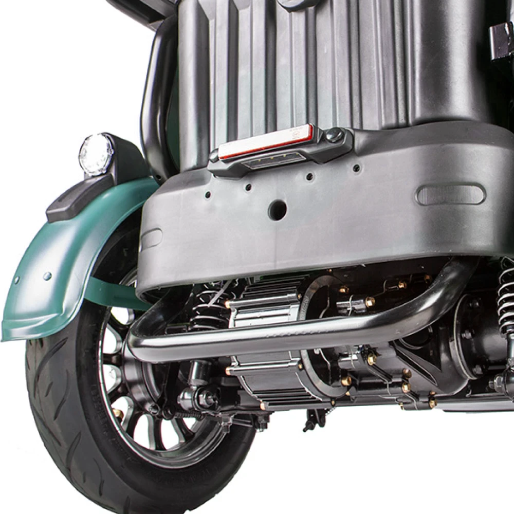 Электротрицикл rutrike, комфортный и безопасный вид тс. Электротрицикл пилот оснащен светодиодной фарой, имеет отличную динамику, которые в сочетании допускают эксплуатацию электрического пилота при любых погодных факторах и в вечернее время.