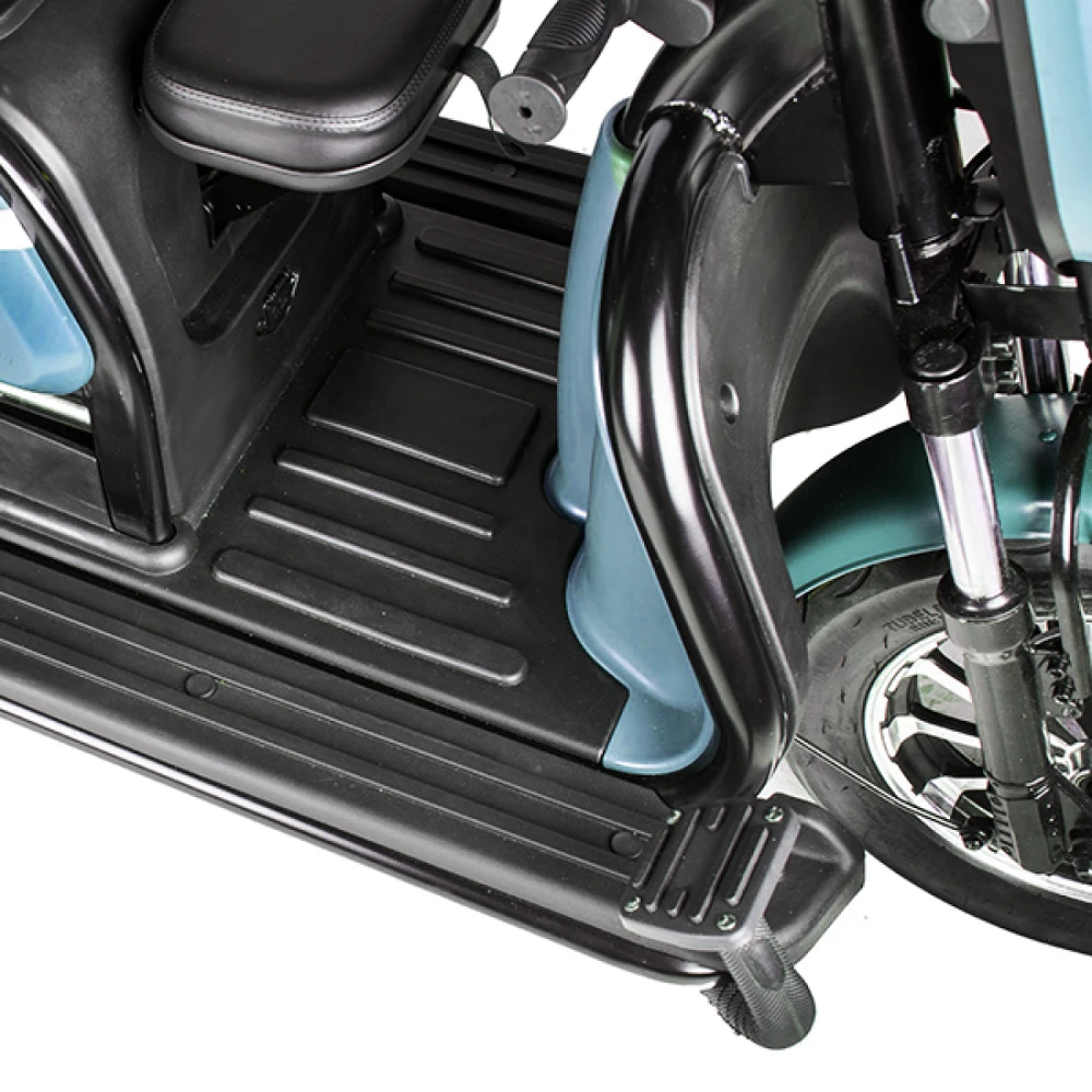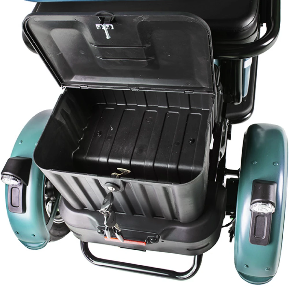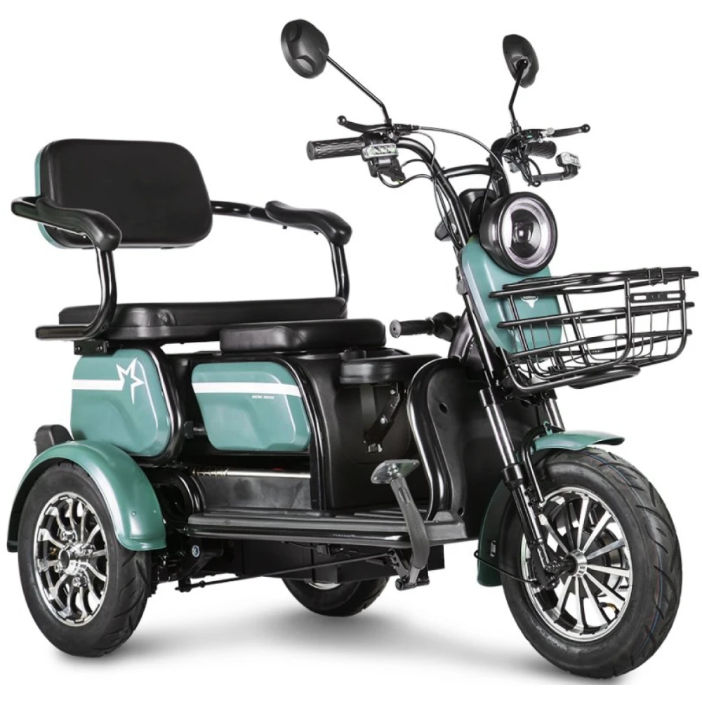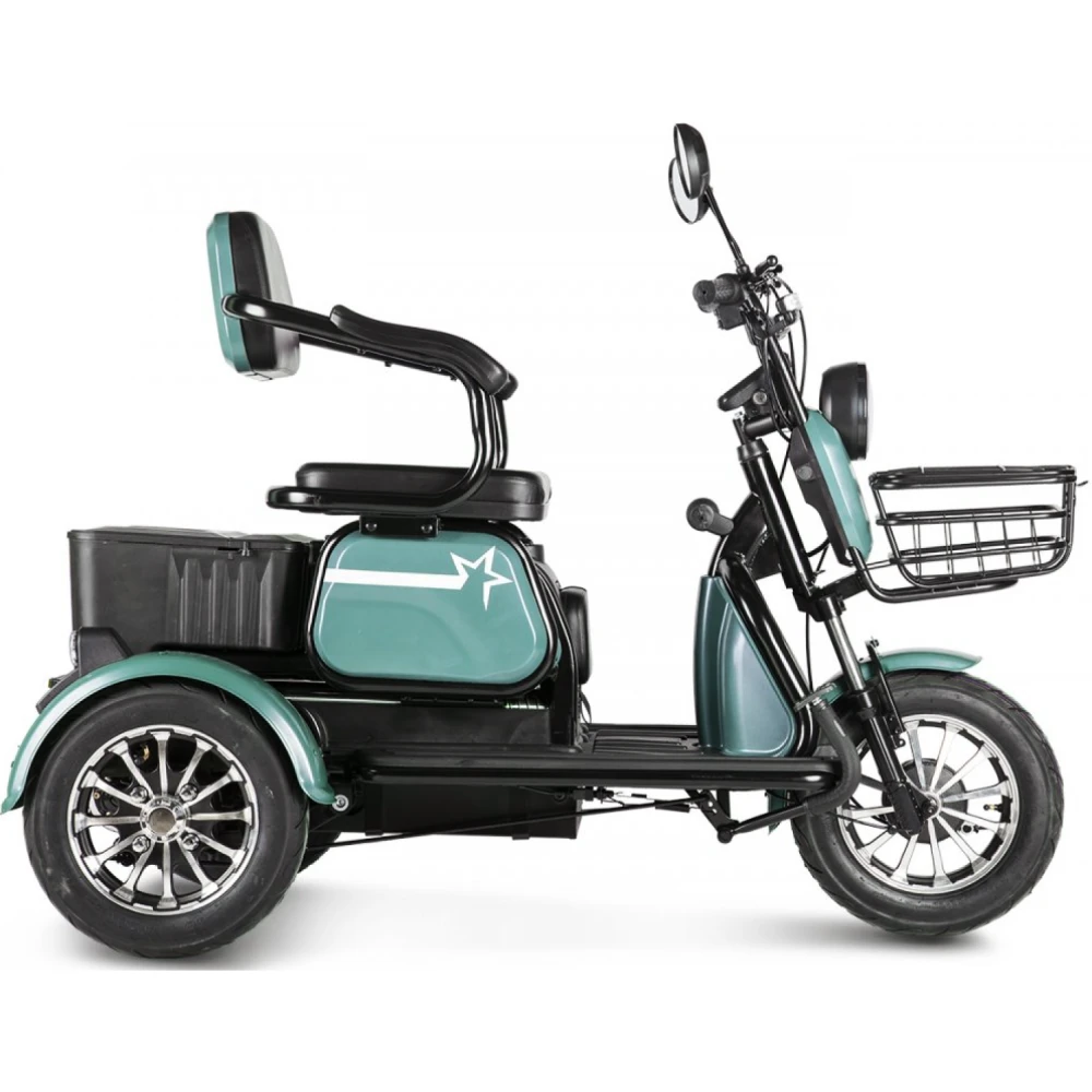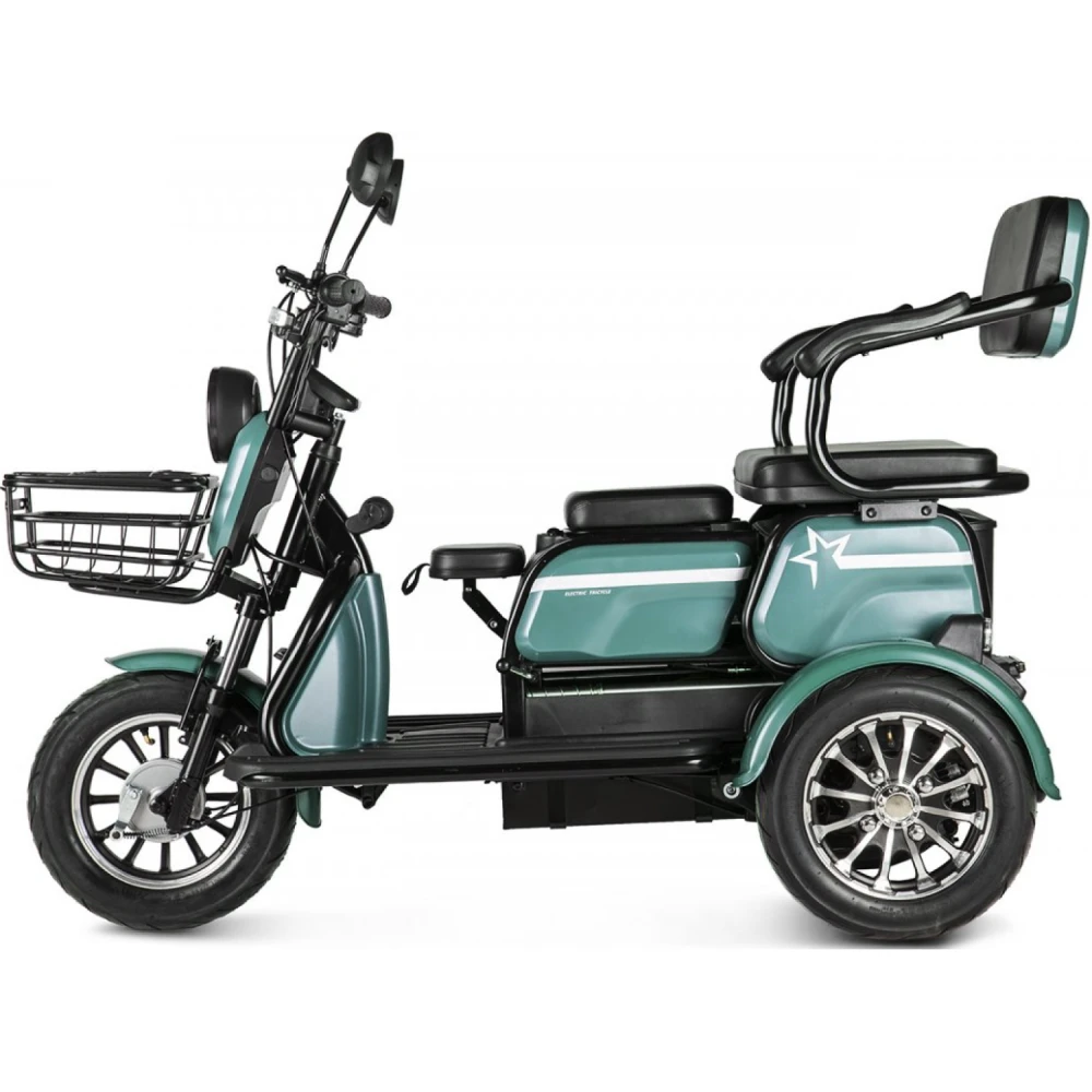 Новый пассажирский электротрицикл – лидер продаж этого сезона. Обладая сравнительно небольшим весом рассчитан на большую грузоподъемность.  Комплектация – максимально возможная.  Оснащен электромотором мощностью 650 Вт, способным разогнаться до 25 км/час и преодолеть без дополнительной подзарядки 30 км. Благодаря электромотору электротрицикл обещает максимальную тягу.