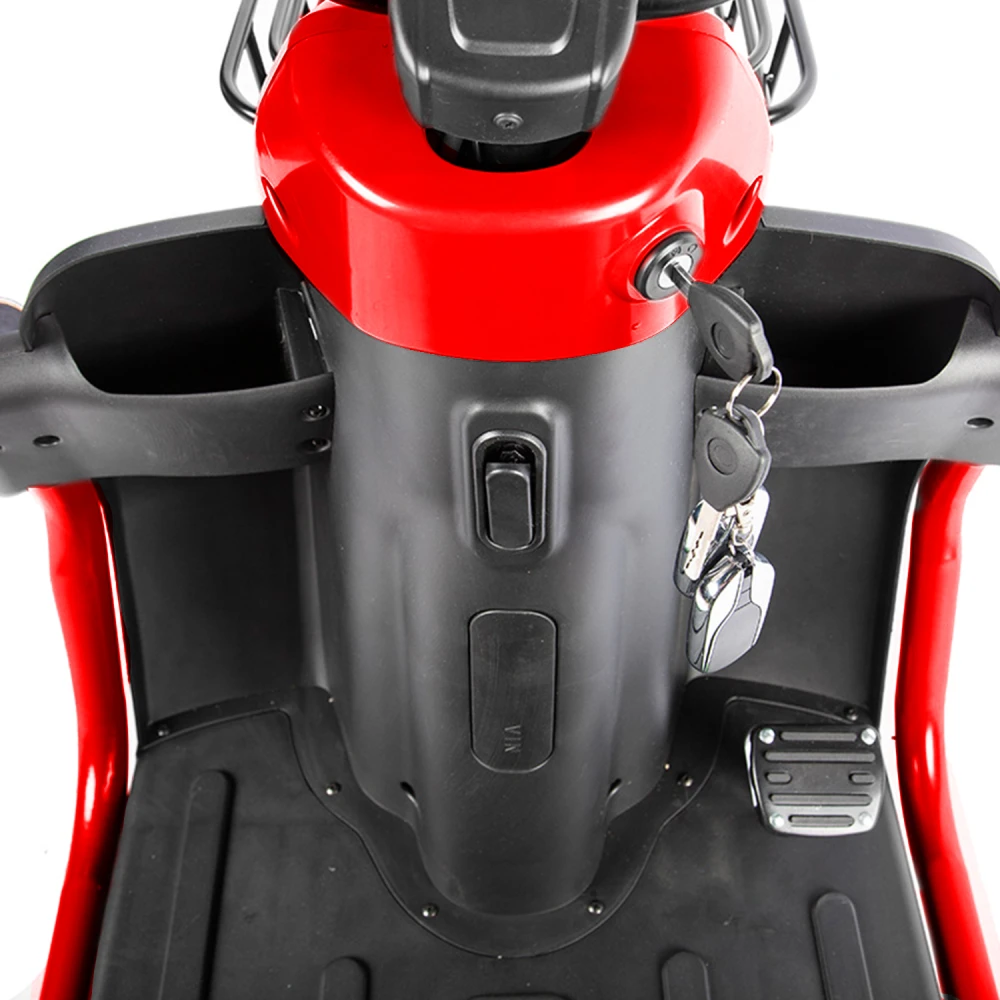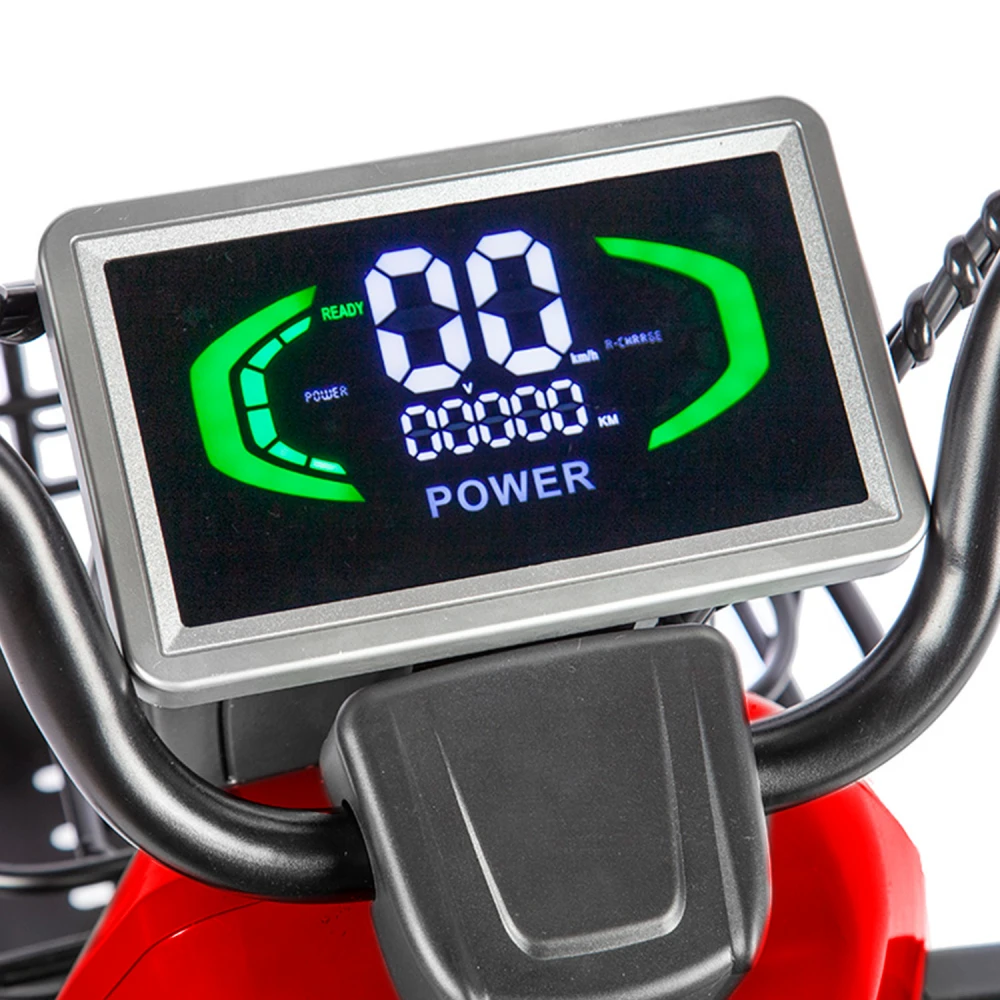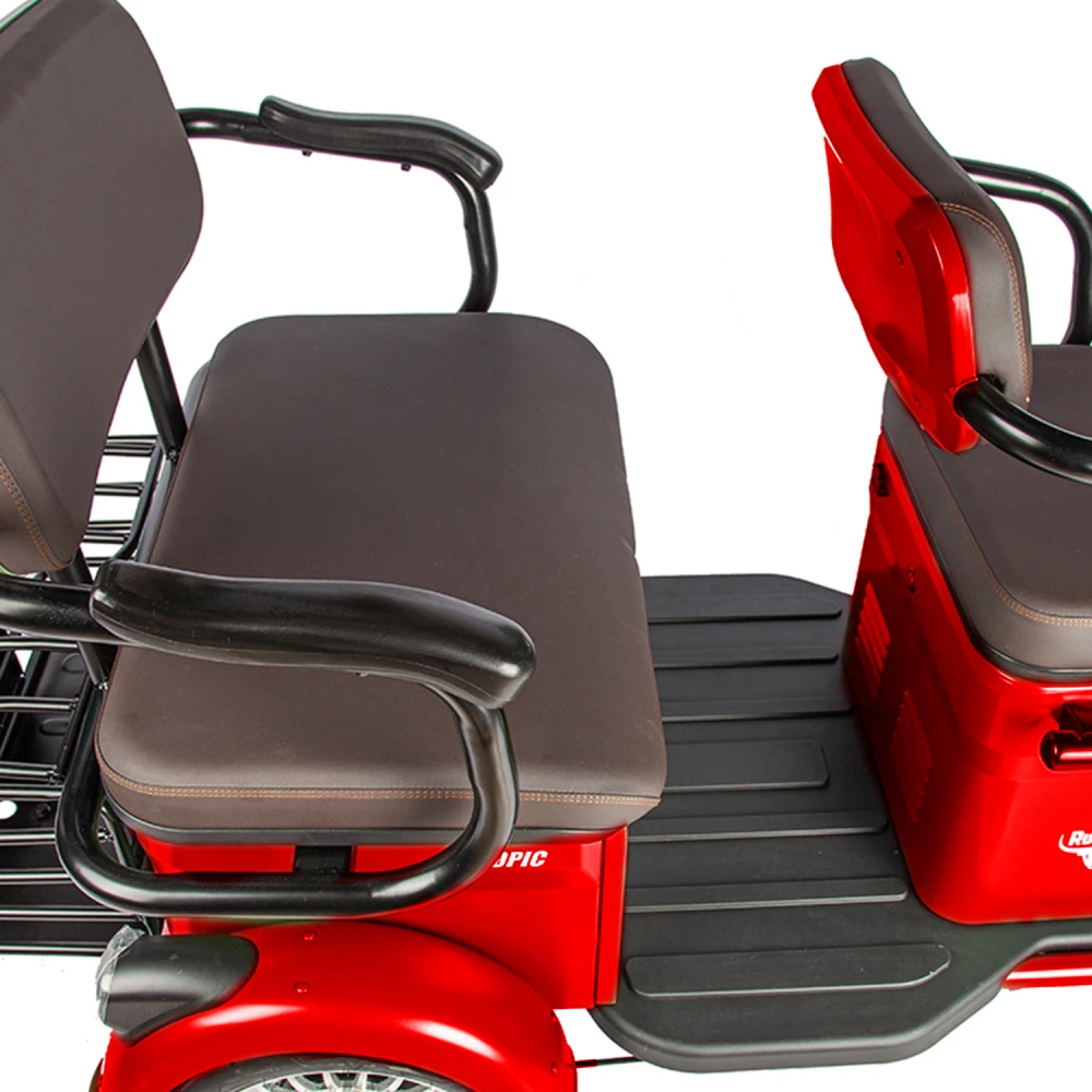 Электротрицикл Rutrike Топик красный – лучший вариант для активного отдыха с друзьями, туристического бизнеса, развлечений в частном секторе. Вместительная модель позволяет насладиться природой, свежим дуновением ветром, притоком дополнительной энергии. Для заказа техники по приемлемой цене выгодно предлагаем связаться с менеджером нашего магазина по телефону или в чате. Мощность электромотора составляет 800 Вт. Батарея в комплектации отсутствует. Производитель предупреждает, что для данной модели трицикла необходимая емкость аккумуляторной батареи составляет 48 В и 60 В. Купить АКБ можно самостоятельно и через наш интернет-магазин. Последний вариант считается более выгодным. Техника оснащена комфортабельными сиденьями. Под последним имеется грузовой отсек. Водительское сиденье из эко-кожи с подлокотниками и спинкой, анатомическое, удобное, не вызывает дискомфорта. Для исключения отека ног модель оснащена мягкой прорезиненной платформой. Управление трициклом простое. Не требует специального обучения. Функционал размещен на рулевой части. Колесная часть 3.00-R10 – накатистая и устойчивая одновременно. Оснащенность гидравлической пружинной подвеской делает движения мягкими по неровностям. Для заказа трицикла быстро, предлагаем сделать телефонный звонок менеджеру или написать ему сообщение в чате.
