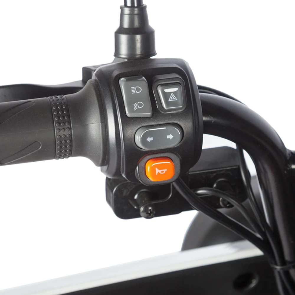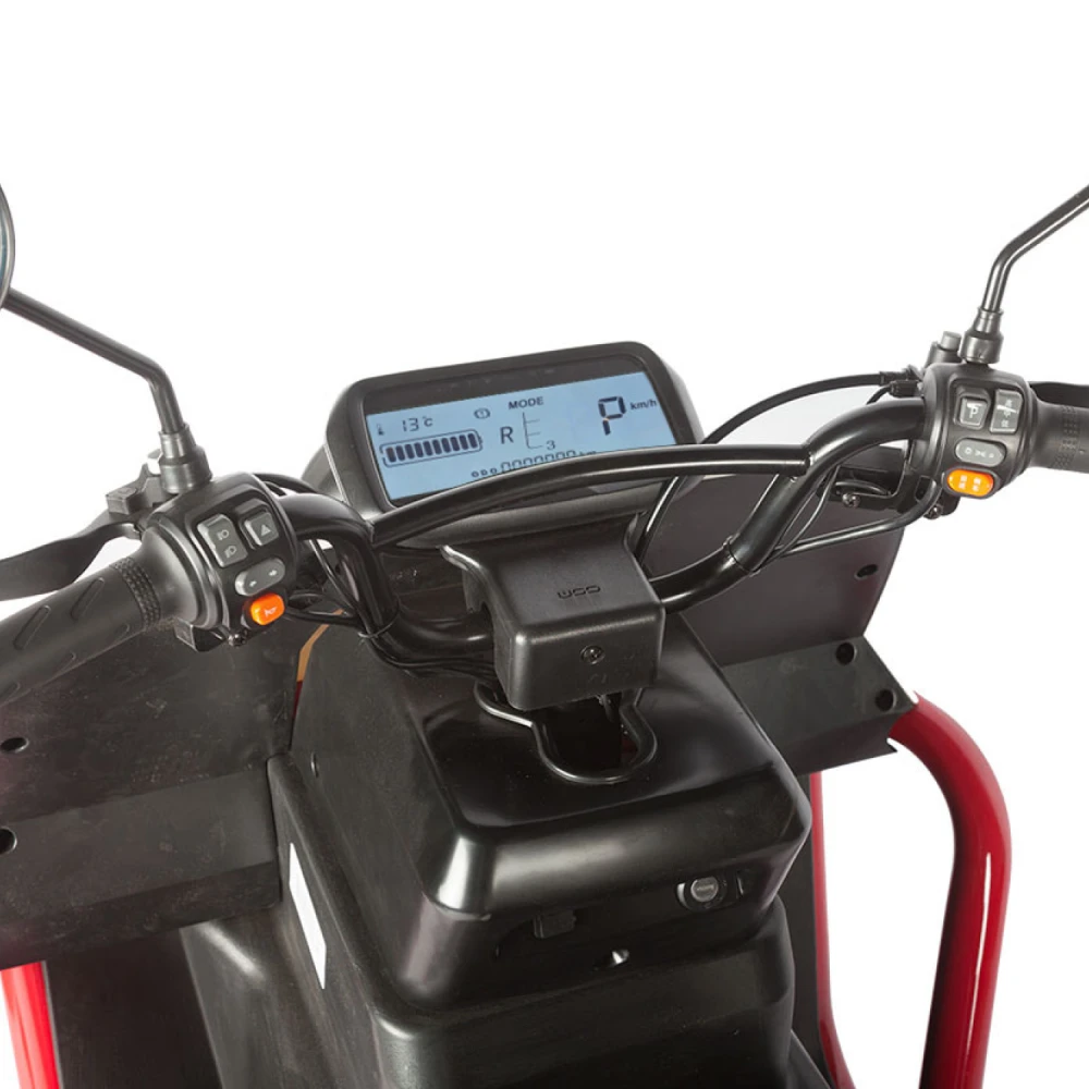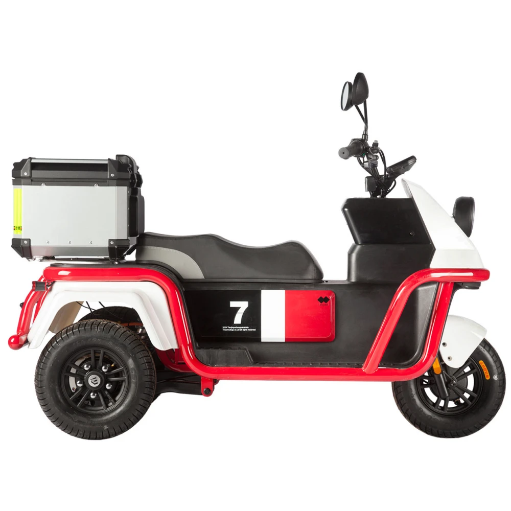 Электротрицикл Wanshida DOUHAO 60V 800Вт – это современное и стильное средство передвижения, созданное для комфортных и безопасных поездок в городских условиях. Модель выполнена в динамичном сочетании черного, белого и красного цветов, что придает ей выразительный и запоминающийся внешний вид.Сердцем данного трицикла является двигатель мощностью 800 W, работающий на аккумуляторе с напряжением 60 V, что обеспечивает стабильное и уверенное движение благодаря заднему приводу. Передние и задние барабанные тормоза гарантируют надежное торможение даже при резких маневрах, повышая безопасность пользователя в условиях плотного городского трафика.Конструкция трицикла отличается прочностью и сбалансированностью: при весе всего 110,6 кг он способен выдерживать максимальную нагрузку до 190 кг, что делает его универсальным решением для разных категорий пользователей. Габариты в собранном состоянии – 120×58×63 см – обеспечивают компактность и удобство при хранении, а 10-дюймовые колеса способствуют стабильной и маневренной езде по разнообразным дорожным покрытиям.Дополнительное оснащение, включая багажник, позволяет легко перевозить необходимые вещи, что делает модель практичным выбором для повседневного использования. Wanshida DOUHAO сочетает в себе современный дизайн, надежные технические решения и высокую функциональность, обеспечивая комфортное и уверенное передвижение в любых условиях.