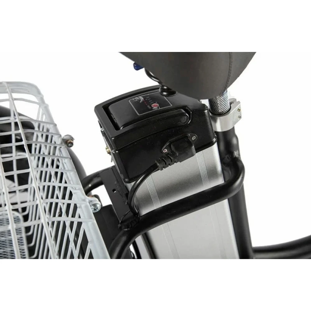 Покупка техники обещает эмоциональное удовольствие и помощь при транспортировки тяжелых предметов. При максимальной грузоподъемности 120 кг электровелосипед со скоростью 30 км/час без труда преодолевает 70 км пути. Указанный показатель максимальный среди трициклов.
