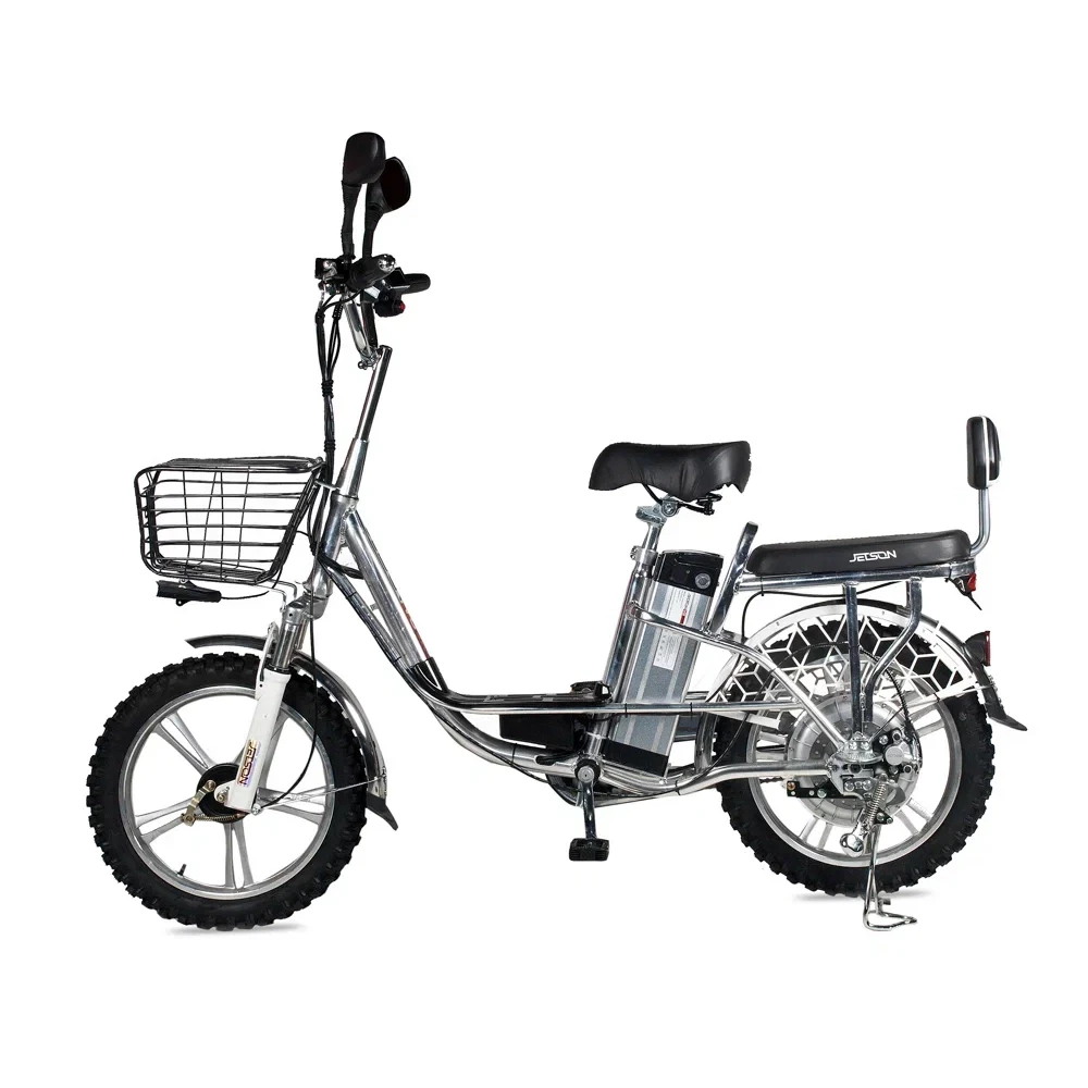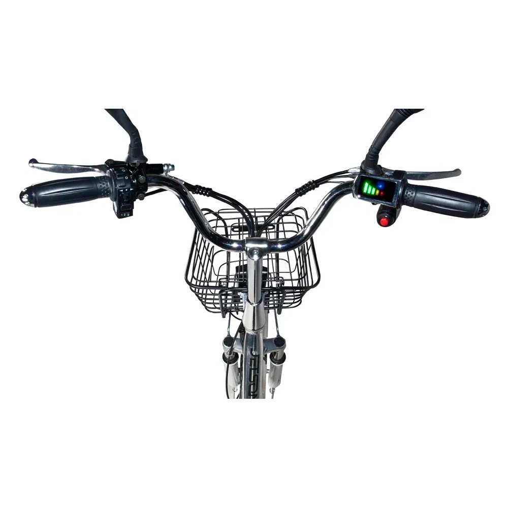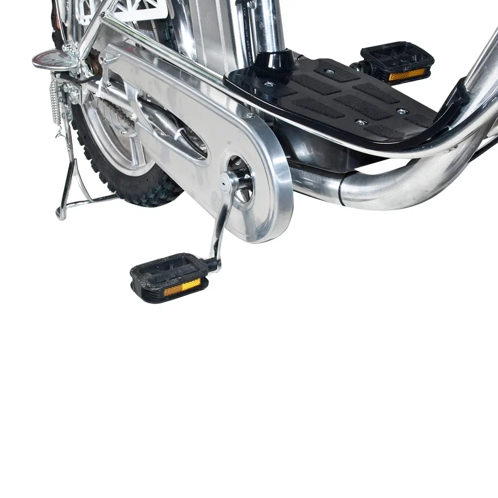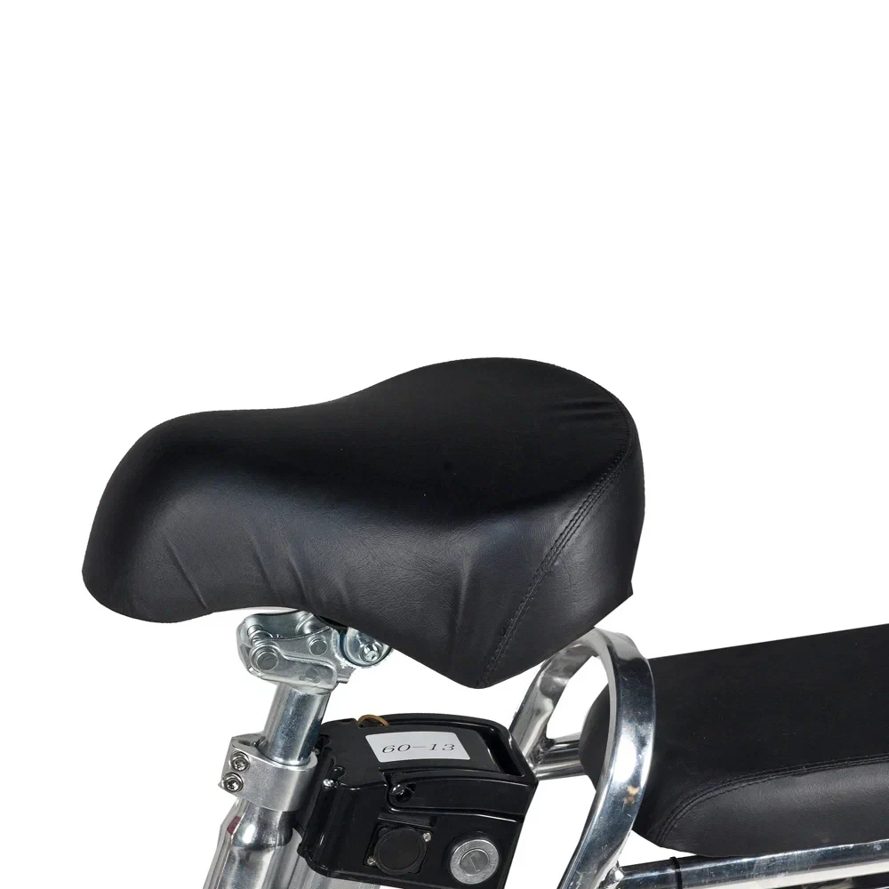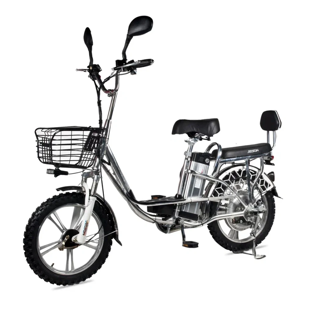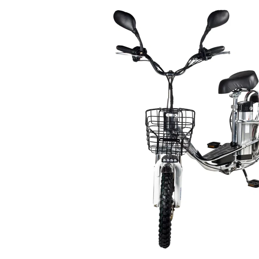 Мощность электровелосипеда составляет 500 Вт, что позволяет развить скорость до 50 км/час и преодолеть до 50 км на одной подзарядке. Современный дизайн электровелосипеда напоминает скутер, надежный и безопасный. Характеристики тс допускают эксплуатацию модели женским и мужским полом. Удобные вместительные сиденья, широкая подставка для ног предрасполагают к комфортному отдыху.