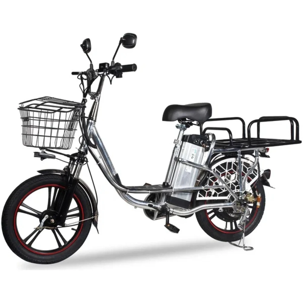 Электровелосипед изготовлен из сверхпрочного алюминия, не теряющего первоначальных характеристик при соблюдении требований производителя. Оснащена мотором мощностью 500 Вт, который в сочетании с емкой АКБ способен развивать скорость до 20-50 км/час и преодолевать до 80 км пути. Гидравлическая тормозная система, профессионализм райдера и надежно сцепляемые с грунтом внедорожные колеса обеспечивают безопасность движения райдера.