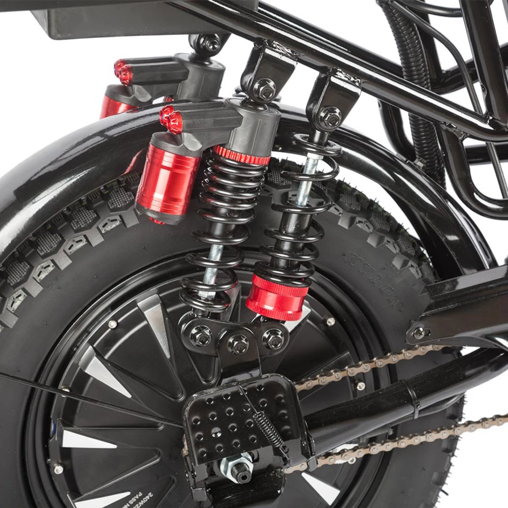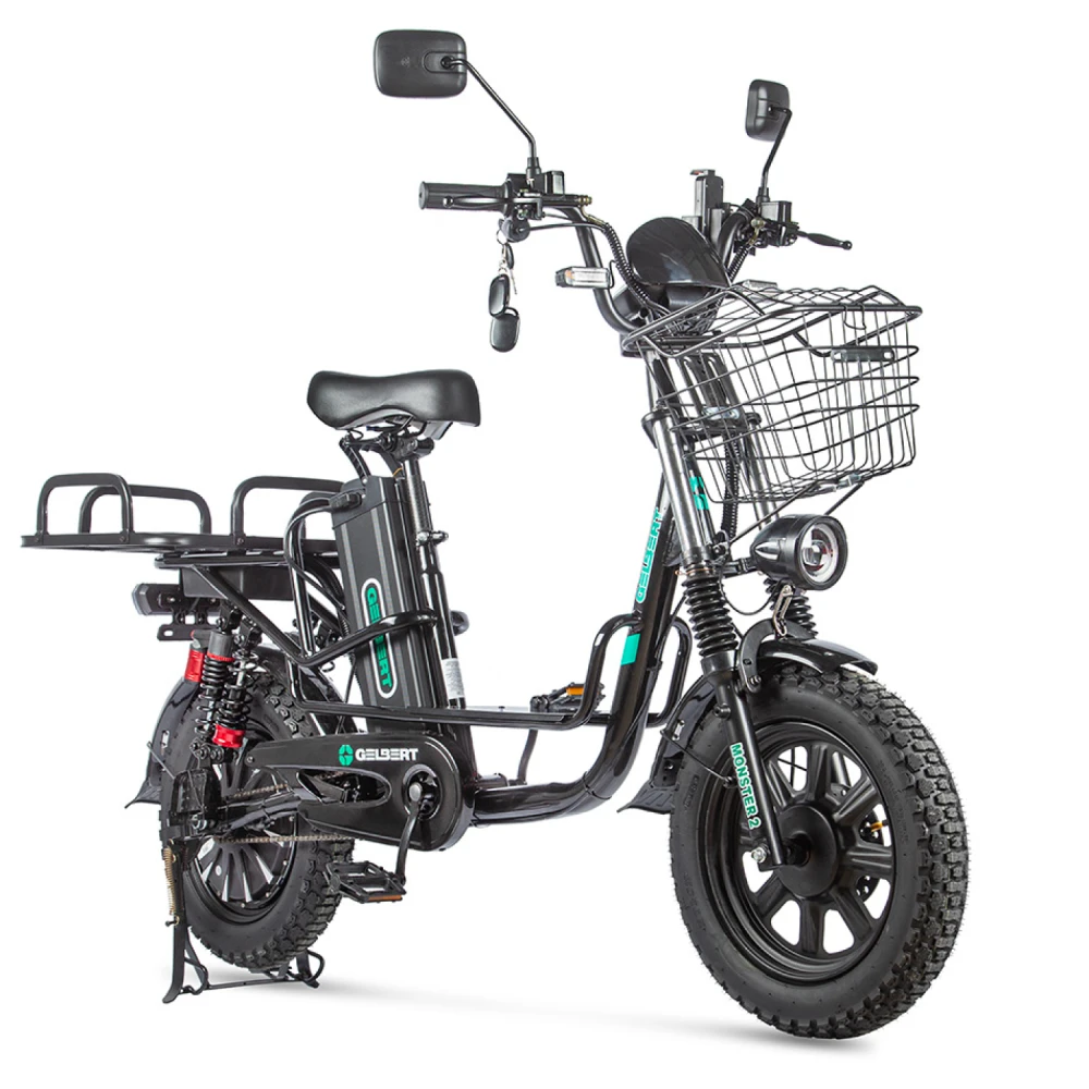 Электровелосипед Eltreco Gelbert Khan Monster 2 – это современное средство передвижения, сочетающее в себе продуманную конструкцию, передовые технологии и стильный дизайн для уверенных городских и пригородных поездок.Модель оснащена передним и задним амортизаторами, которые эффективно смягчают неровности дороги, обеспечивая плавность хода и комфорт даже на пересеченной местности. При заявленном максимальном пробеге до 100 км на одном заряде этот велосипед подходит для длительных поездок – конечно, реальные показатели зависят от веса райдера, рельефа местности, погодных условий и температуры окружающей среды.Безопасность обеспечивается за счет дисковых гидравлических тормозов, которые гарантируют надежное и своевременное торможение в любых ситуациях. Легкий вес в 57 кг позволяет легко маневрировать, а максимальная нагрузка до 150 кг делает модель универсальной для разных категорий пользователей.Двигатель мощностью 240 W, размещенный в задней части, обеспечивает эффективное ускорение и оптимальное распределение энергии, что способствует стабильной работе в условиях городской среды. Электровелосипед оборудован аккумулятором с емкостью 30 Ah и рабочим напряжением 60 V, что гарантирует долгий срок службы батареи и надежную работу даже на длинных маршрутах.Габариты в собранном состоянии – 1700×1150×800 мм – обеспечивают удобное расположение для водителя, а использование качественной стали в конструкции гарантирует долговечность и надежность всей системы. Дополнительное оснащение включает зеркала заднего вида, которые повышают безопасность, а встроенные передние и задние габаритные фары обеспечивают отличную видимость в условиях недостаточной освещенности.Стоит отметить, что данная модель не является складной, что подчеркивает ее прочную и стабильную конструкцию, рассчитанную на долгосрочную эксплуатацию. Электровелосипед Eltreco Gelbert Khan Monster 2 – это оптимальное решение для тех, кто ищет сочетание высоких технологий, надежности и комфорта в одном устройстве.