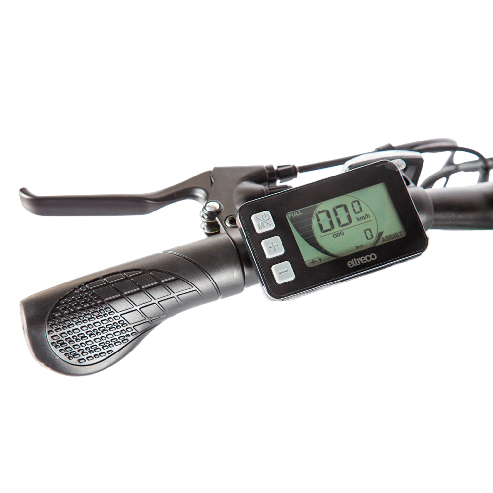 LCD-дисплей, с информацией о скорости, заряде и пробеге, уровень мощности ассистента