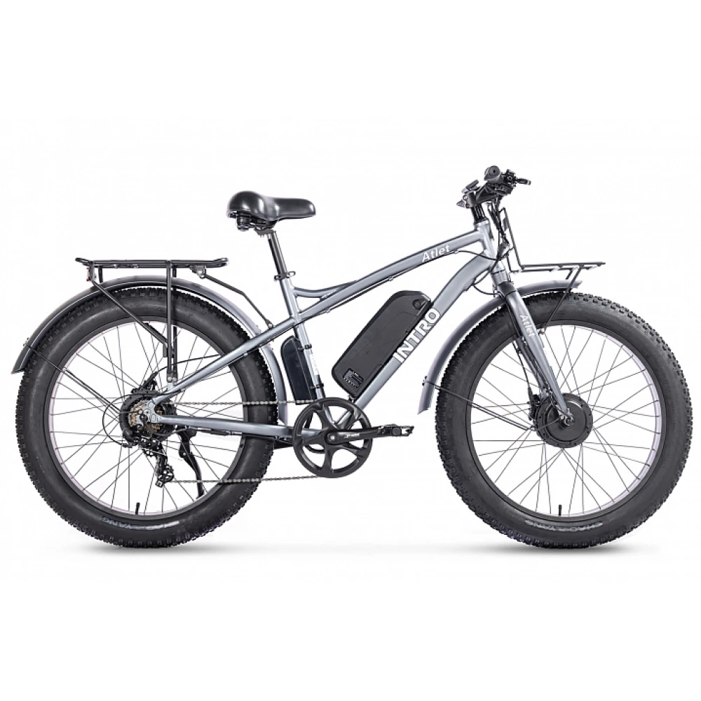 Электровелосипед INTRO Atlet в сером цвете - это сила и стиль, упакованные в одном уникальном транспортном средстве. Он оснащен полным приводом с двумя мотор-колесами по 500W каждое, что обеспечивает впечатляющую скорость до 45 км/ч. Это идеальный выбор для тех, кто ценит быстроту и эффективность в передвижении.