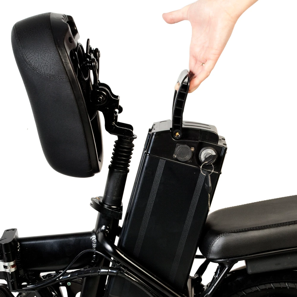 В новой модели производитель обновил комплектующие, сделав модель лучшей по скоростным параметрам. Электровелосипед при мощности мотор-колеса способен развить скорость до 40 км/час и проехать на одной подзарядке до 40 км. Емкая фирменная АКБ размещена в нижней части, сбоку от седла, не мешает райдеру, легко снимается для подзарядки.