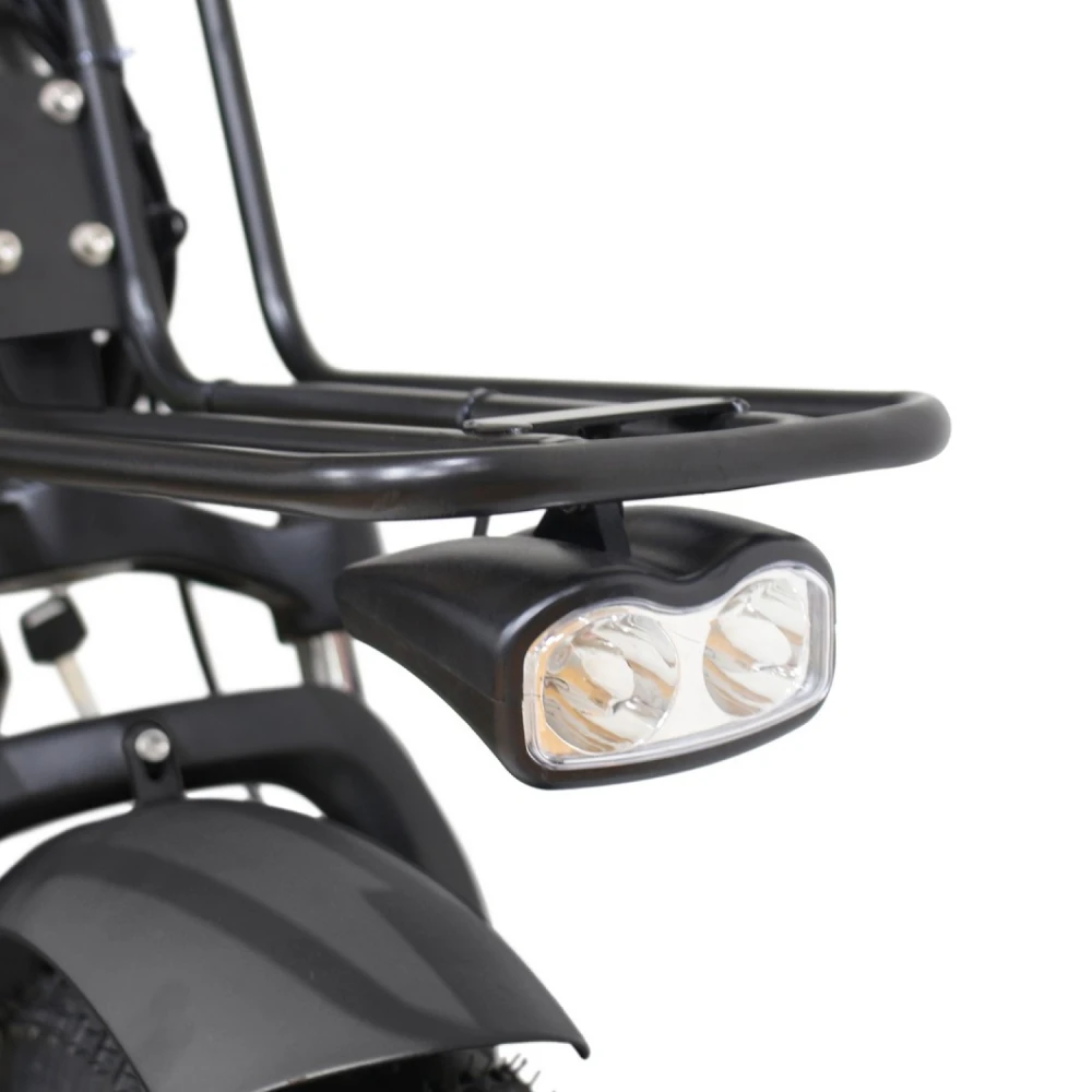 • Дополнительные элементы: фара и стоп-сигнал для безопасности в темное время суток, багажник для перевозки вещей.