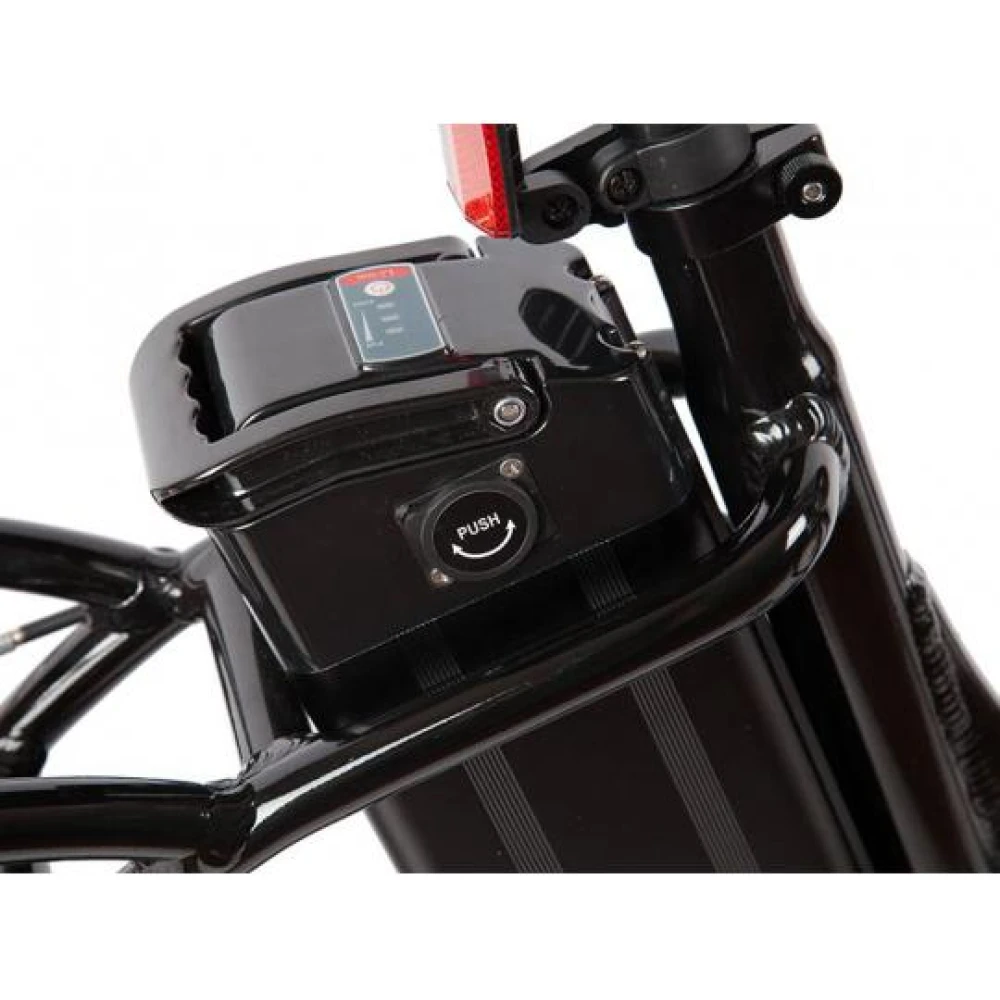 Электровелосипед Eltreco Good Lux оснащен усиленным багажником, есть внешнее освещение. Яркая фара впереди и стоп-сигнал сзади.