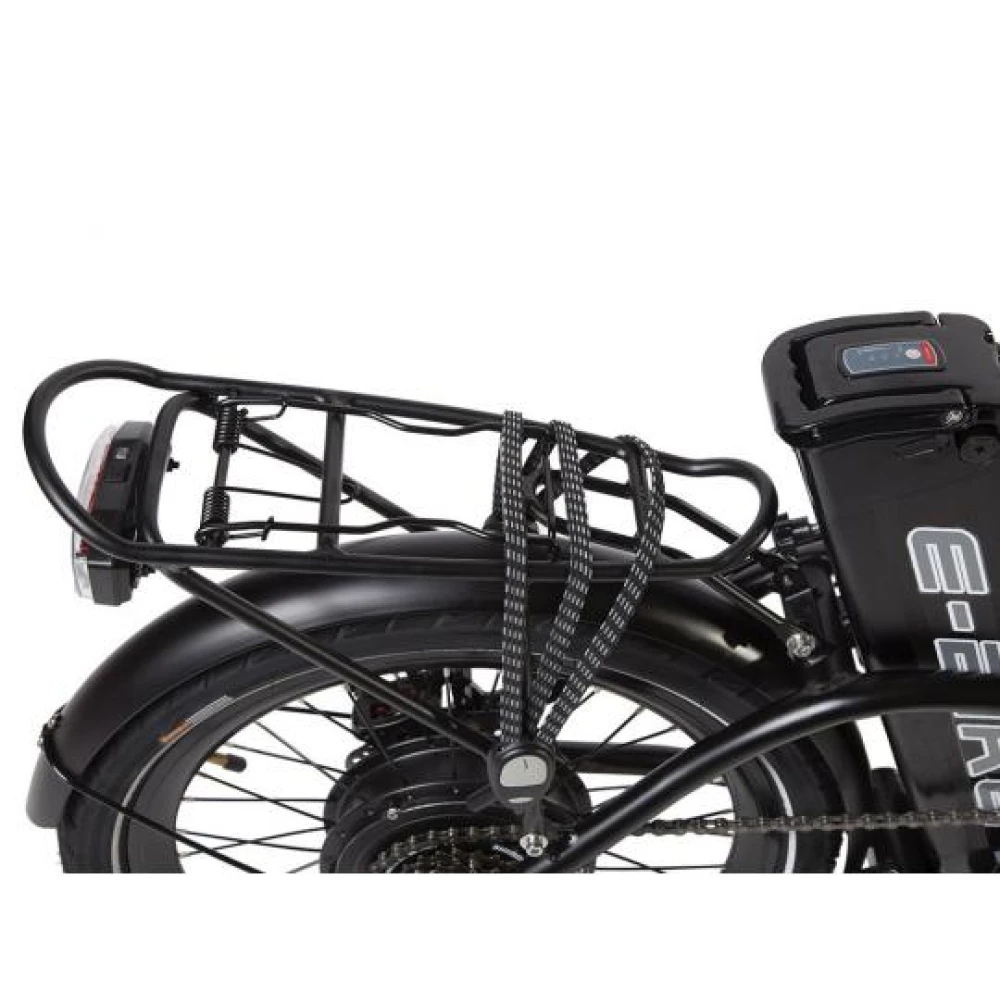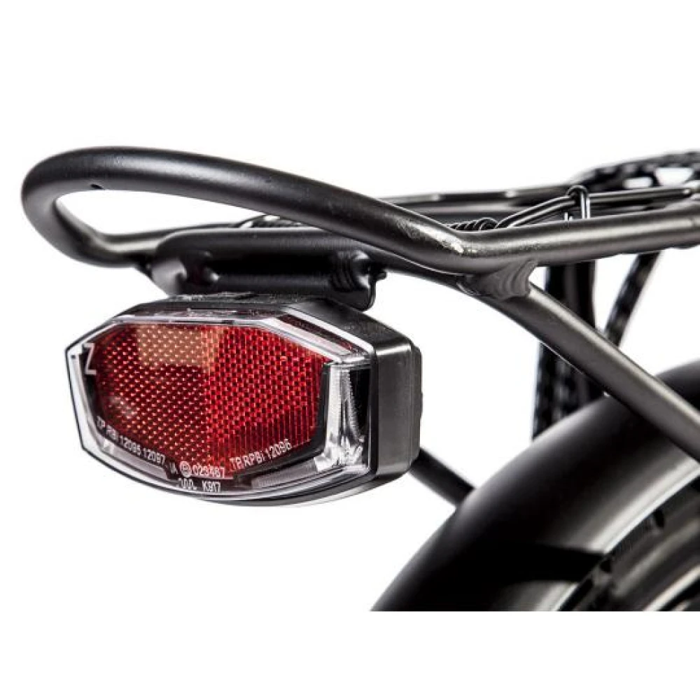 Электровелосипед Eltreco TT New Spoke имеет багажник, впереди яркая фара, сзади красный стоп-сигнал.