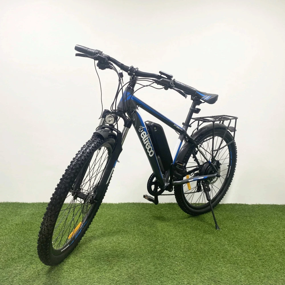 Не желаете терпеть компромиссов, стремитесь к совершенству, предлагаем обратить внимание на велогибрид Eltreco XT 850 new. Черно-синий электровелосипед предназначен для загородных прогулок и езды по горной местности. Из особенностей техники следует выделить: