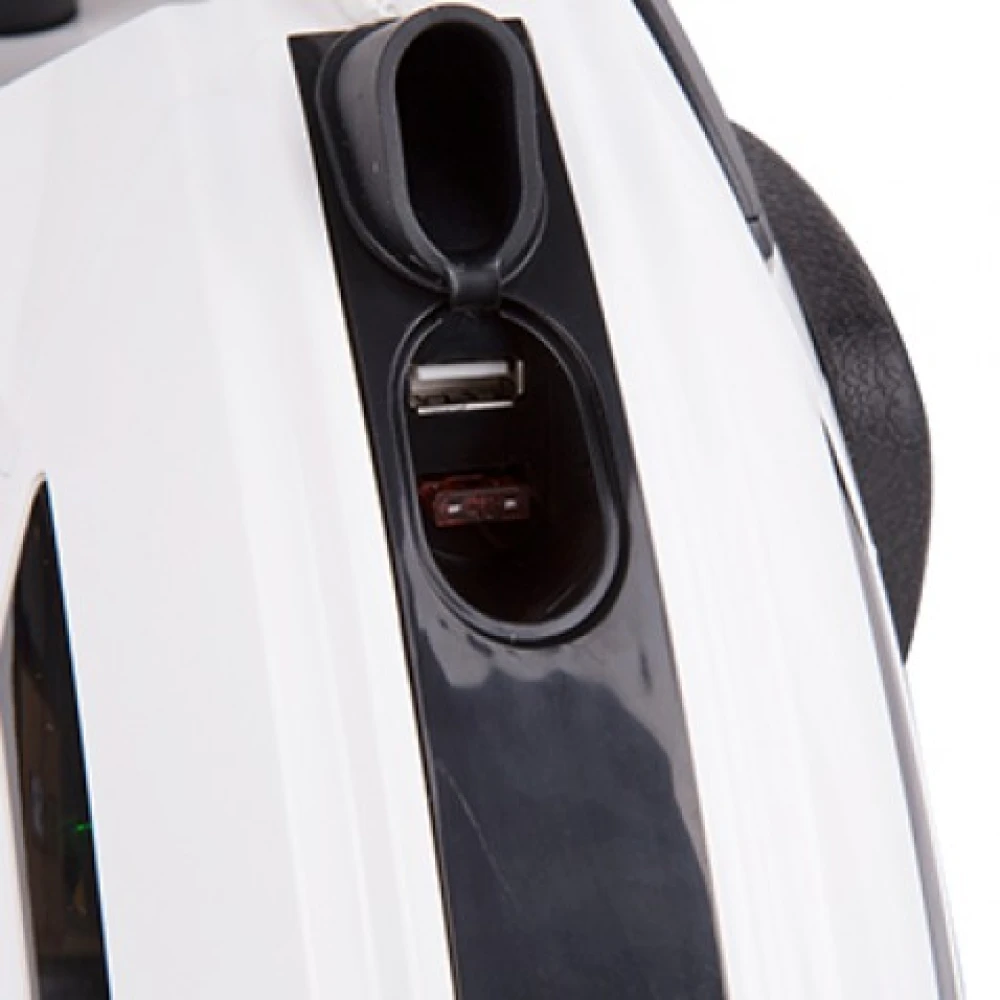 Управлять или настроить наиболее важные показатели можно через приложение, скаченное на Android. Есть USB порт, можно зарядить свой телефон от аккумулятора. LED-подсветка поможет передвигаться в темное время суток.