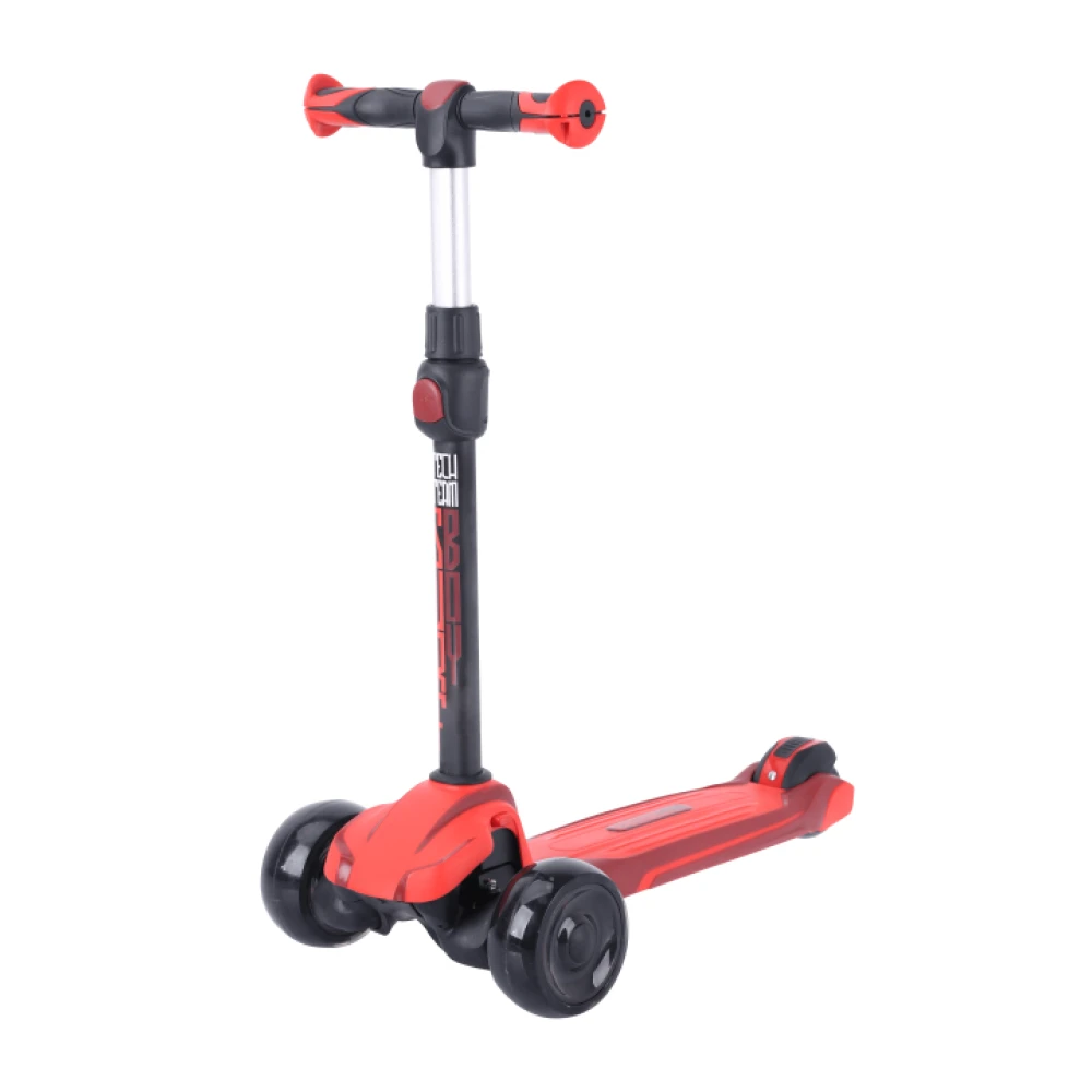 Рукоятка имеет удобные формы и прорезиненную экологически чистую поверхность. Препятствует соскальзыванию ручек. Минимизирует риск неудобств и падения ребенка. Колеса – полиуретановые, большие. Передние и задние представлены размерами 120*50 и 80*50 мм соответственно. Самокат оснащен современными подшипниками и амортизаторами, гарантирует отличный накат, не взывает дискомфорта при пересечении каменистой местности. Во время езды включается светодиодная подсветка, делающая технику более привлекательной.