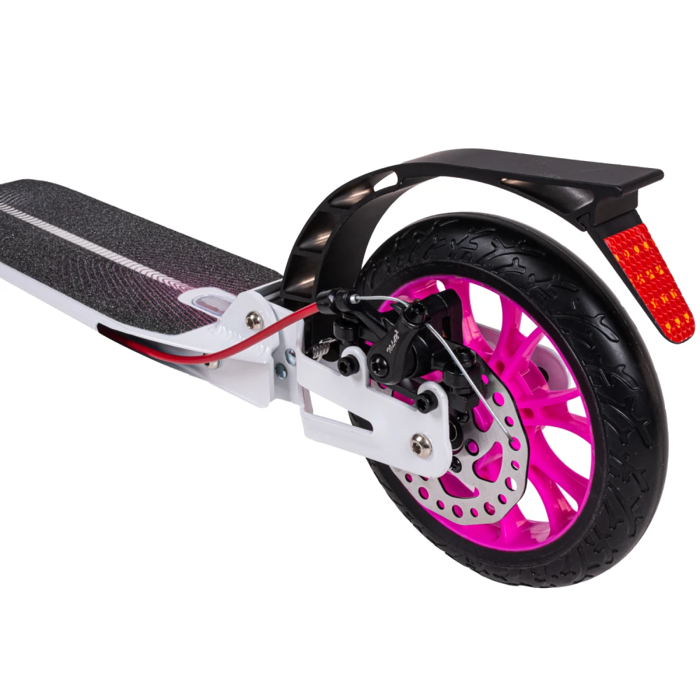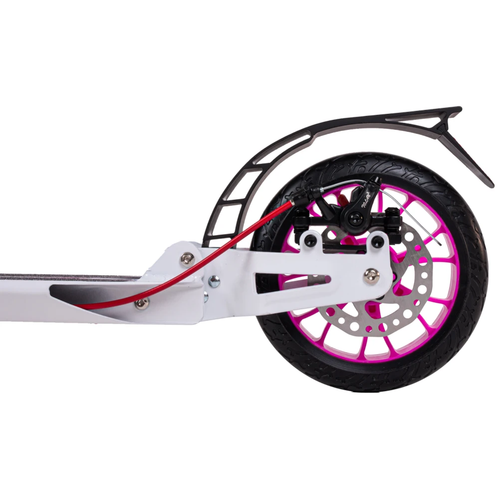 Самокат городской tech team city scooter disk brake розовый – техника весом 6,1 кг и максимальной грузоподъемностью до 50 кг превзошла ожидания покупателей. Компактная, эргономичная и модная. Привлекательный дизайн делает модель заметной на фоне аналогичных самокатов. Складная конструкция придает тс минималистичные, удобные для транспортировки и хранения размеры. Модель изготовлена из облегченного инновационного алюминия, прочного и надежного, не теряющего первоначальные характеристики на протяжении эксплуатации самоката. Рулевая стойка удобная и послушная, высотой 880-960-1040 мм. Прорезиненные анатомические грипсы не скользят, не вызывают запотевания рук, увеличивают степень хвата. Алюминиевая платформа по ширине и длине составляет 136мм*400 мм, устойчивая и нескользящая благодаря фирменной шкурке. 200мм колесная часть гарантирует максимальный накат. Оснащенность техники подшипниками последнего поколения (ABEC 9 Chrome) обеспечивает максимальный разгон. Техника рассчитана для езды в пределах города и парковой зоны. Идеальный вариант для начинающих райдеров. Оформить заказ по приемлемой цене максимально быстро предлагает наш интернет-магазин. Каждому покупателю гарантирована бесплатная консультационная помощь и другие бонусы.