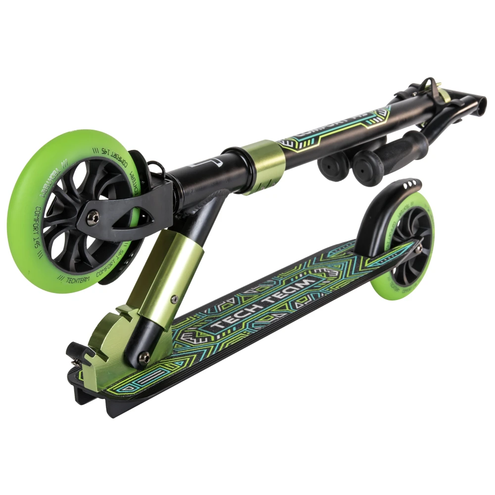 Самокат Tech Team COMFORT 145R 2022 черно-зеленый понравится необычным дизайном и заметностью. Техника рассчитана для езды по городской местности и парковой зоне. Брендовые логотипы и особое отношение к оформлению по достоинству были оценены пользователями. Приобрести модель выгодно, получить бесплатную консультацию предлагает наш интернет-магазин.