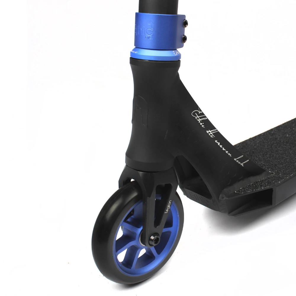 Ethic Erawan V1 blue оснащен колесами диаметром 110 мм, которые обеспечивают отличное сцепление с поверхностью и позволяют достигать высоких скоростей. Уникальная система амортизации обеспечивает комфорт и безопасность при катании на этом самокате.