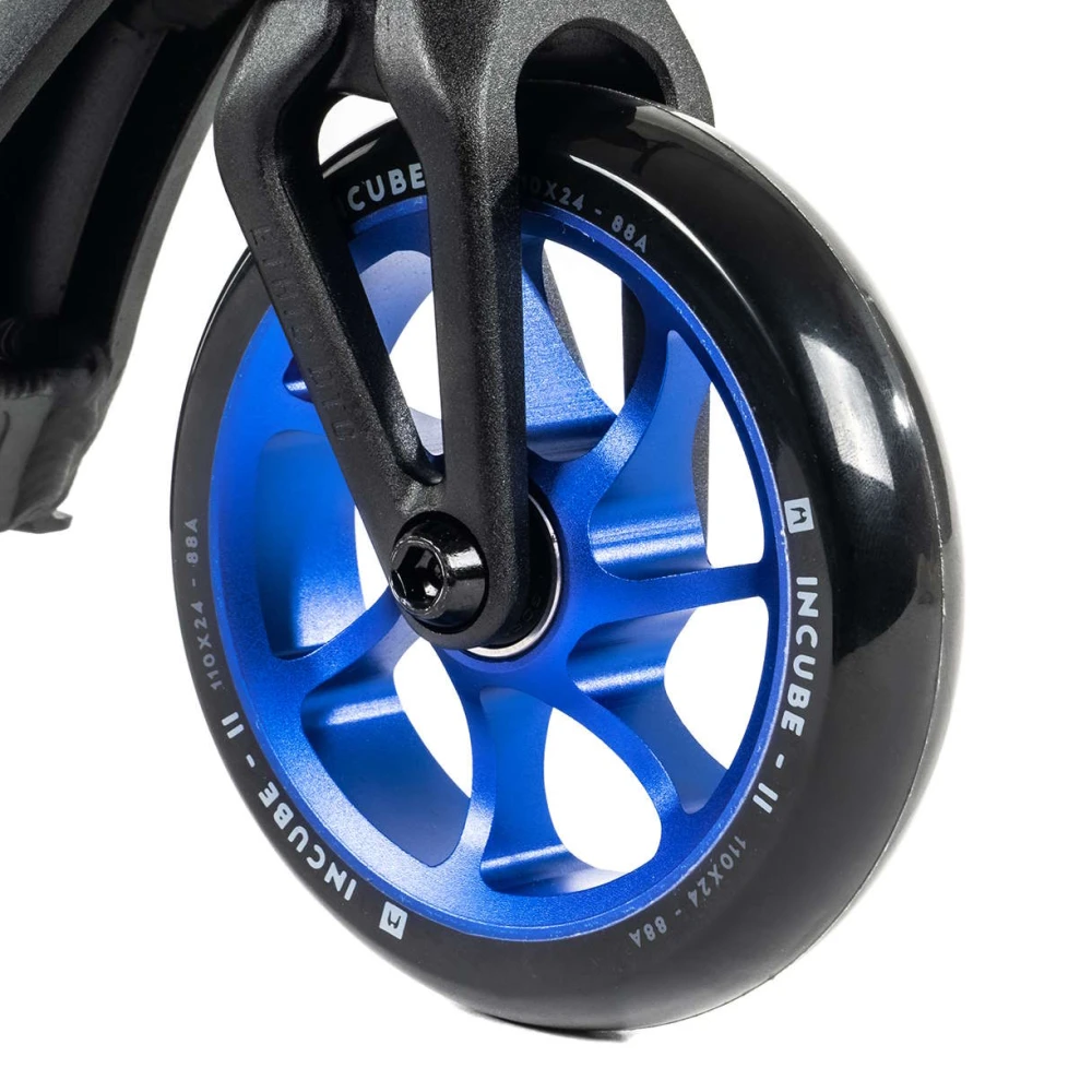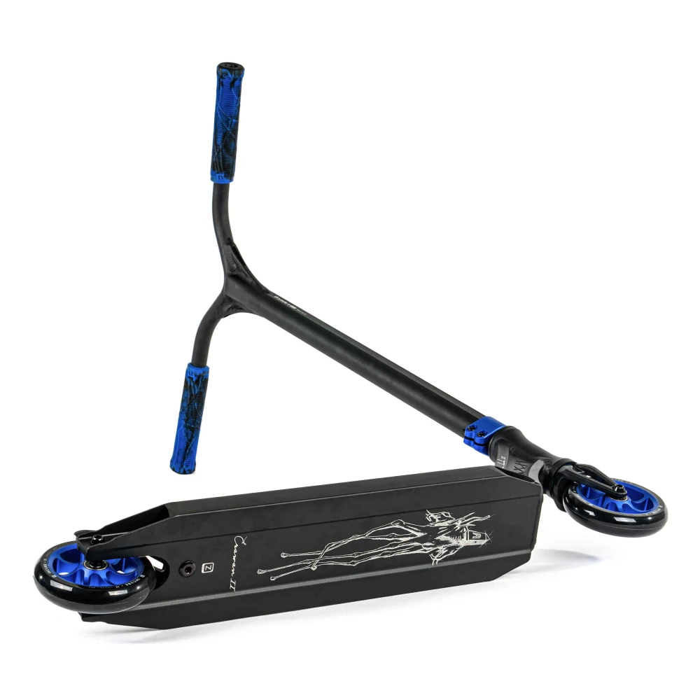 Этот самокат совмещает в себе классическую строгость черного цвета с яркими акцентами синего, что делает его уникальным выбором для тех, кто не боится выделяться. С весом всего 2.79 кг, он обеспечивает непревзойденную легкость и маневренность, позволяя вам покорять новые вершины в мире трюков. Диаметр колес 110 мм и подшипники класса ABEC 9 гарантируют плавность и скорость, делая каждую поездку комфортной и безопасной.