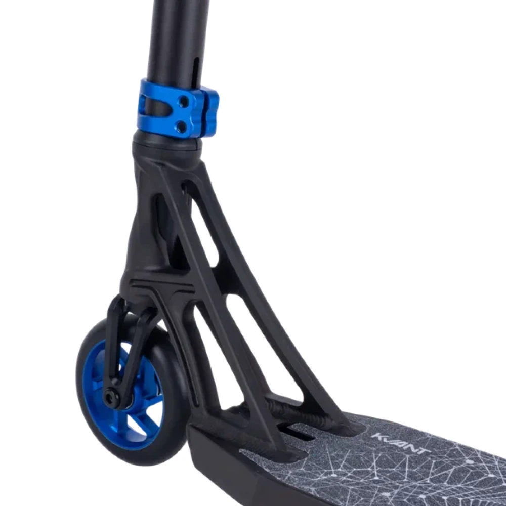 Трюковой самокат Tech Team Kvant 2023 Синий имеет аэродинамический дизайн, который дает возможность ездить с высокой скоростью без вибрации и скольжения на выпускном выходе, благодаря своей четкой структуре и надежным компонентам.