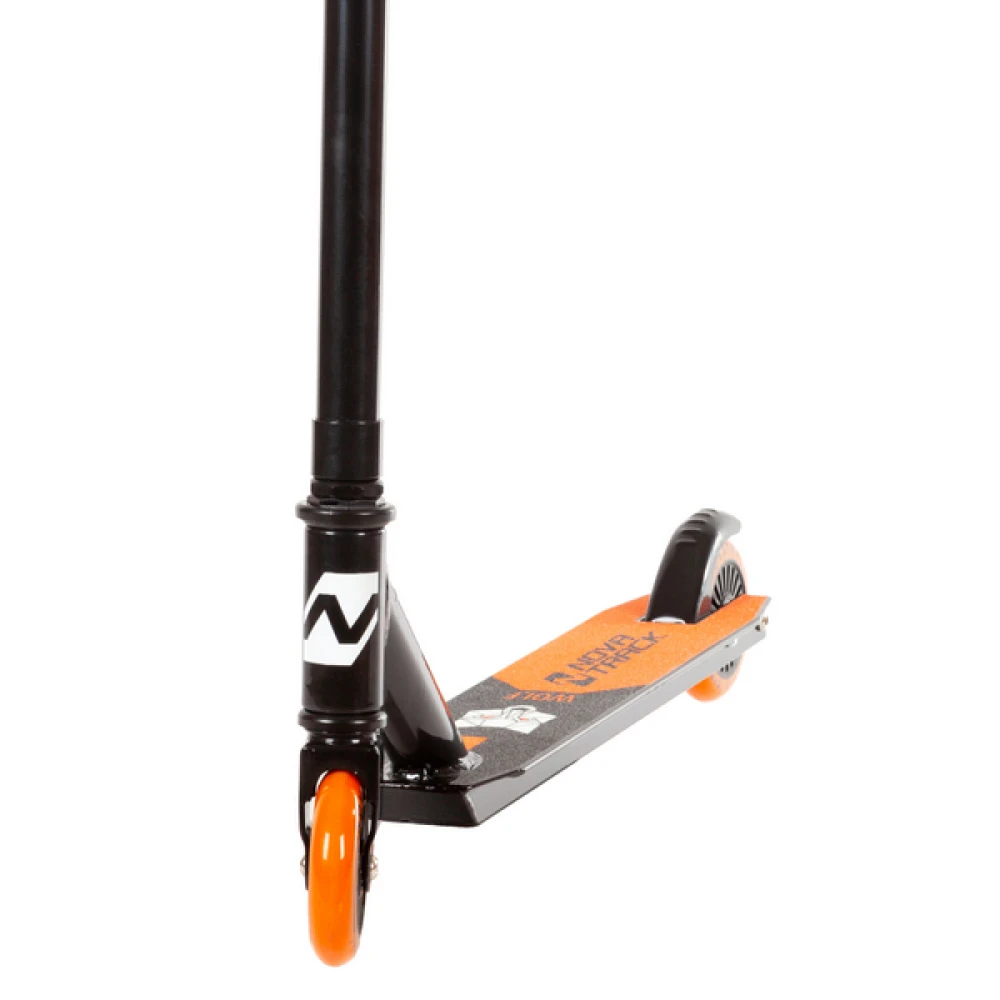 Трюковый самокат Novatrack WOLF EL черно-оранжевый — ваш идеальный компаньон для экстремальных приключений и впечатляющих трюков. Рассчитанный на максимальную нагрузку до 100 кг, этот самокат обеспечивает надежность и безопасность благодаря стальной вилке и классу подшипников ABEC-7. Дека длиной 48 см и шириной 9.5 см с прочным покрытием «шкурка» обеспечивает отличное сцепление и контроль. Резьбовая рулевая система и полиуретановые колеса диаметром 100 мм гарантируют плавное и устойчивое движение. Задний ножной тормоз обеспечивает мгновенную остановку, что особенно важно для райдеров от 8 лет и старше. Novatrack WOLF EL — воплощение стиля и надежности для смелых и активных!
