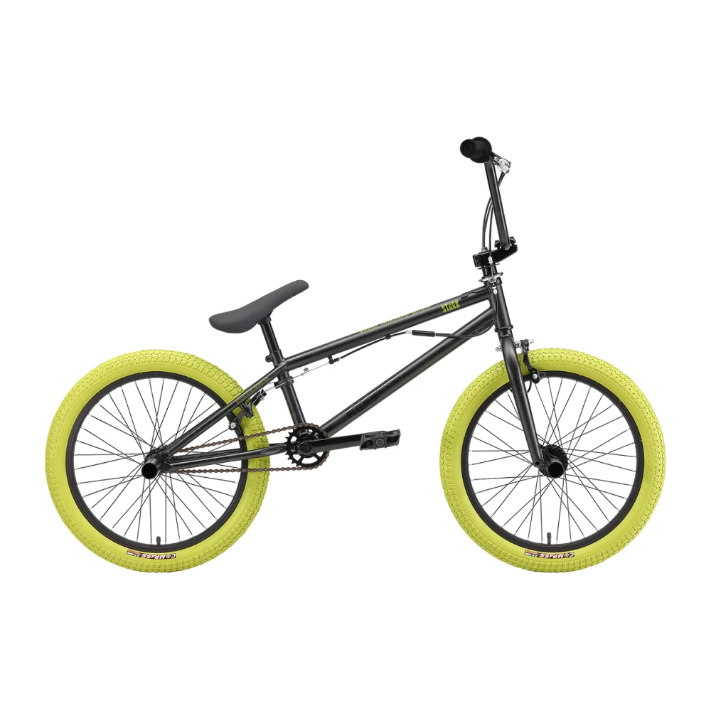 БМХ Stark Madness 3 2024 в антрацитовом матовом цвете с зелеными покрышками - это смелое и элегантное сочетание. Взвешивая 14.3 кг, велосипед с 9-дюймовой рамой из стали Hi-Ten 13A и 20-дюймовыми колесами обеспечивает отличную устойчивость и прочность. Ободные клещевые тормоза Sparkle U-969D гарантируют безопасность, а жесткая вилка Stark Rigid обеспечивает идеальное управление. Рукоятки XHH XHG117 из резины длиной 125 мм и стальной руль Intek ITC-6665 размером 730*178 мм обеспечивают комфортную езду. Укомплектован седлом Aerj A-6609, цепью KMC Z-410 и конусными втулками Kung Teng, этот велосипед ригида готов к любым испытаниям.